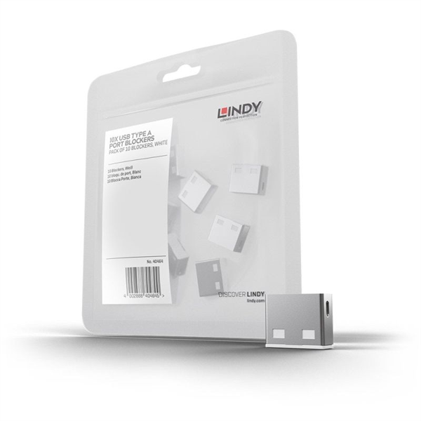 About Lindy USBA Port Block x10 W The USB Port Blocker is made up of a combined 'key' and 'lock' assembly which plugs into the USB port and physically blocks access to it