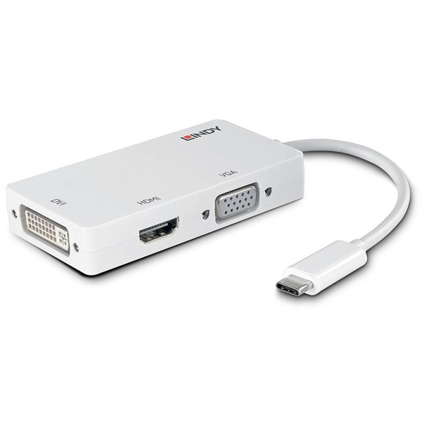 The Lindy USB 3.1 Type C to Triple Display Converter allows users to connect either an HDMI, DVI or VGA screen to a Macbook, ultrabook or notebook with USB 3.1 DisplayPort Alternate Mode