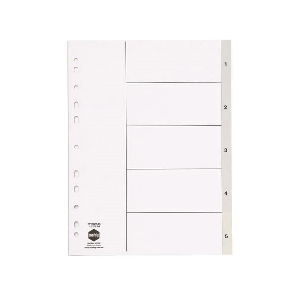 Marbig 35100 Dividers 1-5 Tab A4 PP Grey