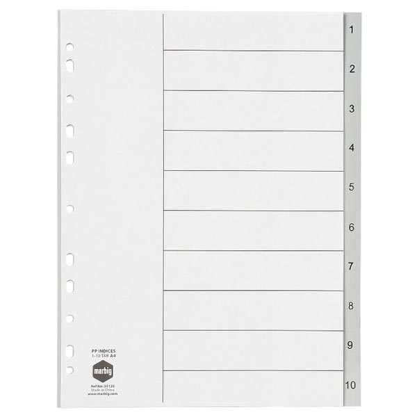 Marbig 35120 Dividers 1-10 A4 PP Grey