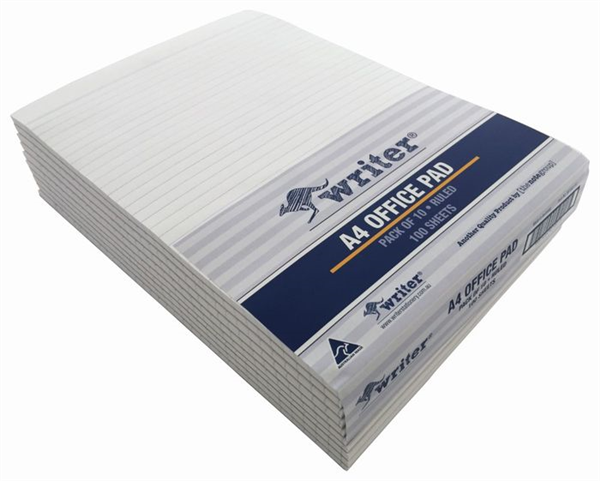 Office Note Pad A4 Ruled 100 Leaf White Pack 10/ NP1001 - 10 Pads