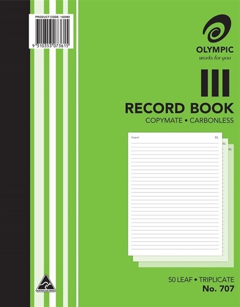 Olympic 707 Carbonless Triplicate Ruled Record Book 200 X 250mm
