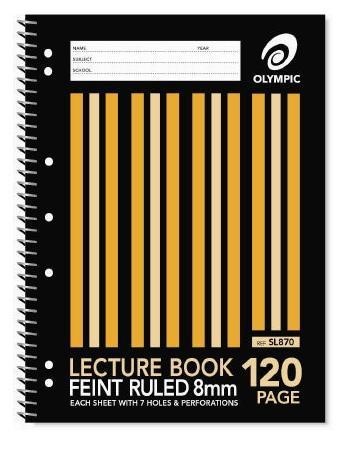 Olympic SL870 Spiral Lecture Book 7 Hole Perforated A4 8mm Ruled 120 Page