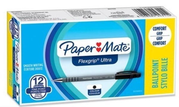Papermate 9630131 Flexgrip Ultra Ballpoint Pen Medium 1.0mm Black Box 12
