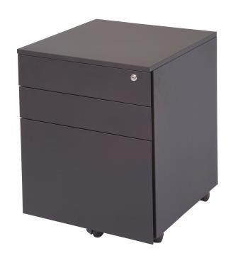 Pedestal Metal Mobile 3 Drawers 1 x File + 2 Box Drawers Black Ripple