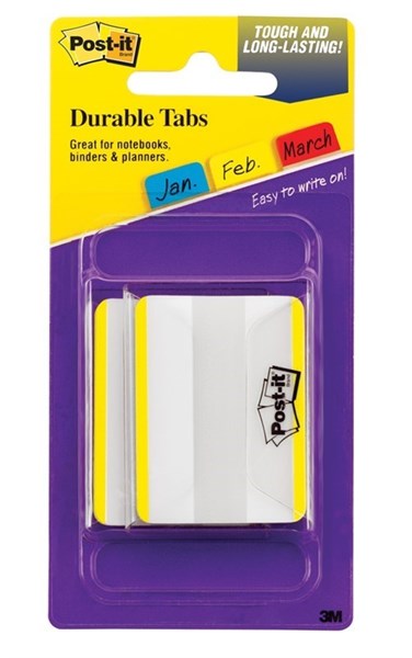 Tough, strong and sturdy, Post-it Durable Tabs are ideal for all types of longer term filing and indexing to keep you organised! Post-it® Tabs in 50.8mm size create necessary order by easily organising file folders