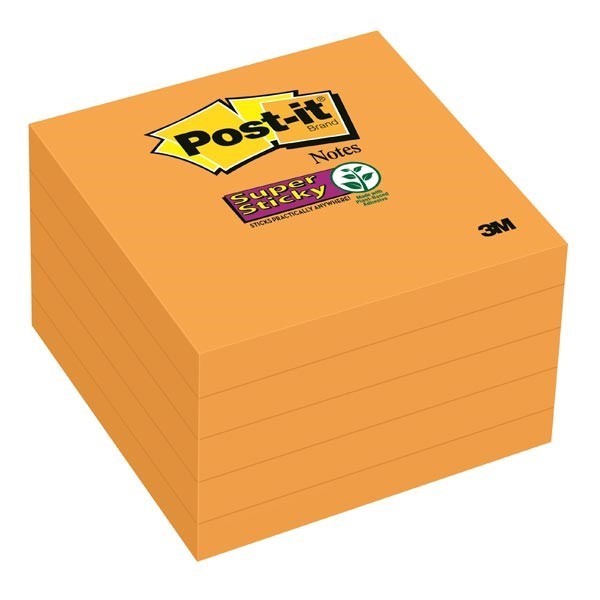 Post It Notes 654 5SSNO 76 x 76mm Super Sticky Orange Pack 5