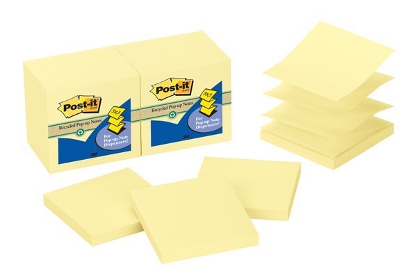 Post It Notes R330R-12CY Pop Up 76 x 76mm Recycled Canary Yellow Pack 12