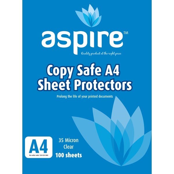 Aspire/ Protext A4 Heavy Duty Sheet Protectors 70 micron clear bx100, Low Glare np9696