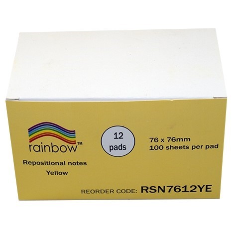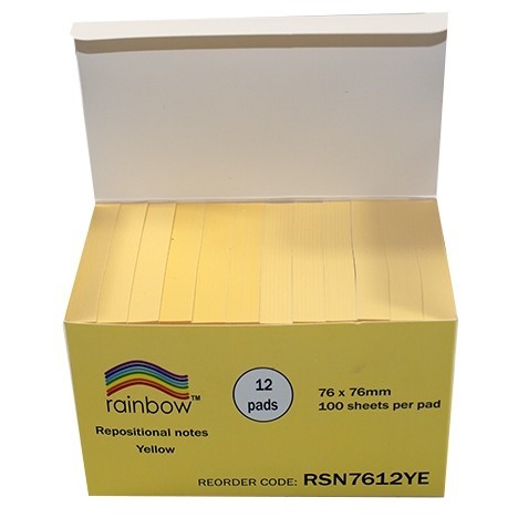 Rainbow Repositional Notes 76 X 76Mm Yellow (Rainbow) (PKT12) - RSN7612YE