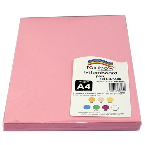 RAINBOW SYSTEM BOARD 150GSM A4 100 SHEETS PINK