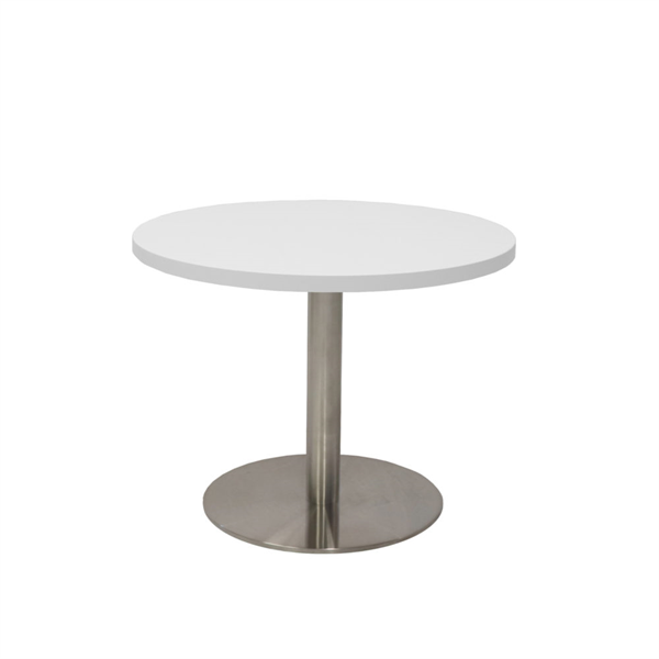 Round Table 900mm Stainless Steel Disc Base White Top