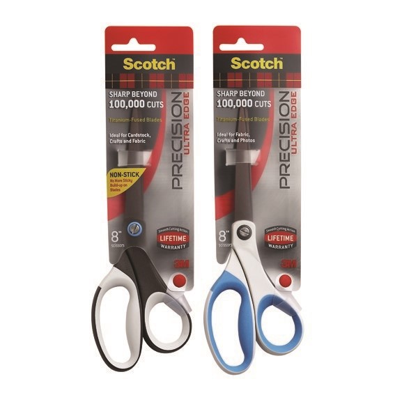 Scotch® Precision Ultra Edge Non-Stick Scissors are sharp beyond 100,000 cuts with a non-stick titanium fused blade
