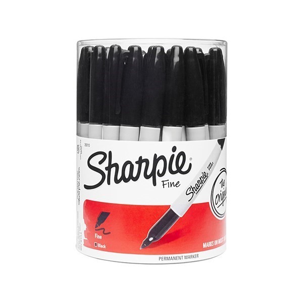 Sharpie Fine Marker Black Canister Pk36 permanent ink marks on paper, plastic, metal, and most other surfaces