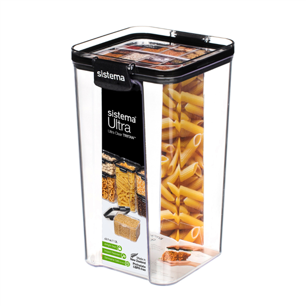 Sistema Ultra clear containers can be stored perfectly on the counter top, kitchen drawers, pantry and fridge