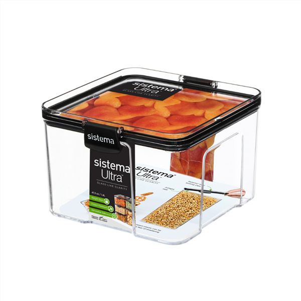 Sistema Ultra clear containers can be stored perfectly on the counter top, kitchen drawers, pantry and fridge