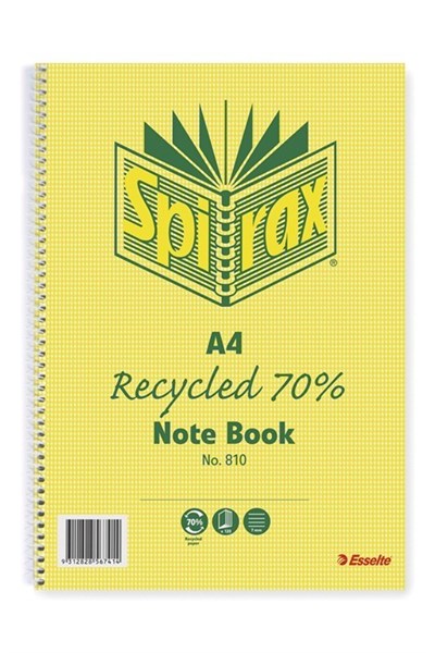Spirax 810 Notebook A4 Recycled 70% 120 Page Side Open