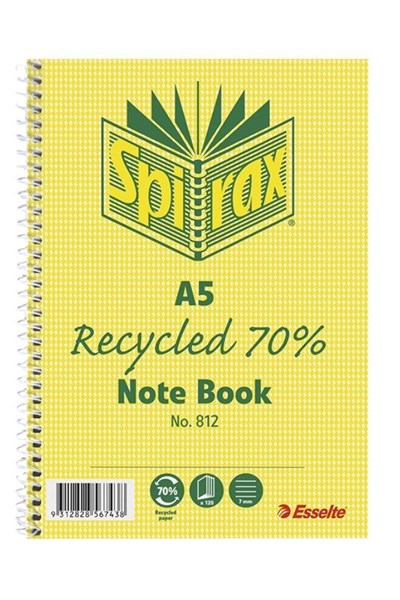 Spirax 812 Notebook A5 Recycled 70% 120 Page Side Open