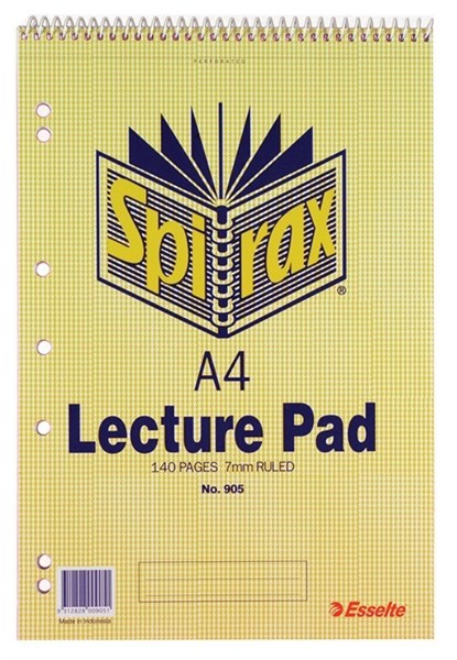 Spirax 905 Lecture Pad A4 140 Page Top Open