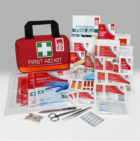 1 x 1010 Bandage Conforming Light 5cm 1 x 1020 Bandage Conforming Light 7.5cm 1 x 1064 Bandage Compression Extra Firm 10cm 1 x 1128 Tape surgical 2.5cm x 9m 1 x 1181 Triangular Bandage 110cm x 110cm 1 x 2230 Adhesive Strips, 50’s 2 x 2025 Gauze Swabs 7.5cm x 7.5cm x 5 1 x 2090 Wound Dressing No.14 2 x 2140 Non-adherent Dressing 7.5cm x 10cm 3 x 2152 Non-adherent Dressing 5cm x 5cm 2 x 2170 Eye Pad 1 x 3010 Scissors Medical 12.5cm SS Sharp/Blunt 2 x 305402L Gloves Nitrile Large pair (disposable) 1 x 3070 Forceps Pointed 12.5cm SS Sharp 1 x 3080 Emergency Accident Blanket 1 x 309105 Splinter Probe (disposable) 1 x 3130 Safety Pins (assorted x 12) 1 x 3140 Note Pad & Pencil 1 x 3225 Emergency First Aid book 1 x 353802 Resuscitation Face Shield (without valve) 1 x 3646 Pen Ballpoint (black ink) 1 x 4070 Bag resealable small 10cm x 18cm 1 x 4080 Bag resealable medium 15cm x 23cm 1 x 4090 Bag resealable large 23cm x 30cm 2 x 505400 Swabs Antiseptic 6 x 505300 Swabs Iodine 4 x 5111 Saline Steritube 15ml 5 x 514000 Hydro Gel sachets 3.5g *Contents subject to change