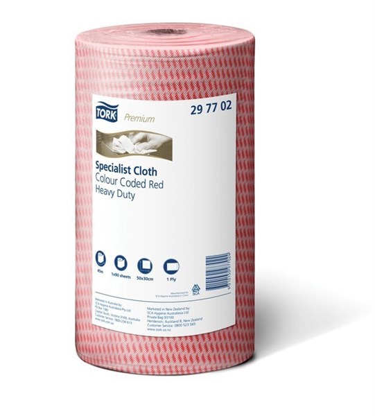 Tork 297702 Washroom Cloth Heavy Duty Red Roll