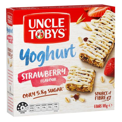Uncle Tobys Yoghurt Tops Strawberry Muesli Bar Box 6