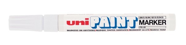 The Uni-Paint permanent paint marker writes on any surface, inside or out, fade proof with vivid colour.